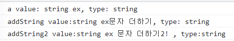 console.log(`addString2 value:${addString2}, type:${typeof addString2}`);