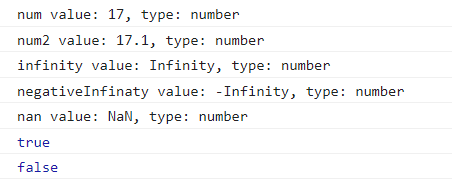 console.log(`infinity value: ${infinity}, type: ${typeof infinity}`);